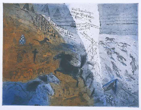 Voltaire in Potsdam - Die Flucht, Farbradierung, 50x65