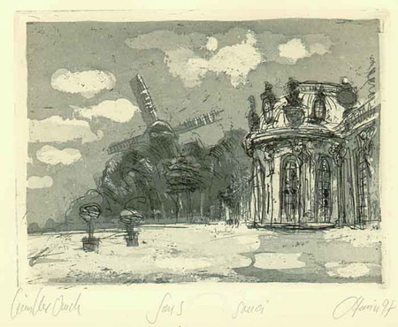 Schloss Sanssouci, Radierung, 15x20