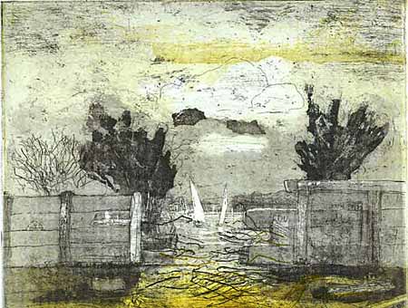 Potsdamer Landschaft 1990, Farbradierung, 40x30