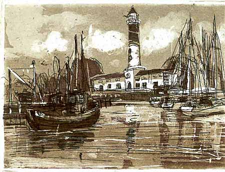 Insel Poel - Leuchtturm, Radierung, 15x20